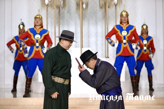 Ерөнхийлөгч У.Хүрэлсүх “Чингис хаан” тэргүүн зэргийн одон гардуулсны дараа хэлсэн үгийг хүргэж байна.