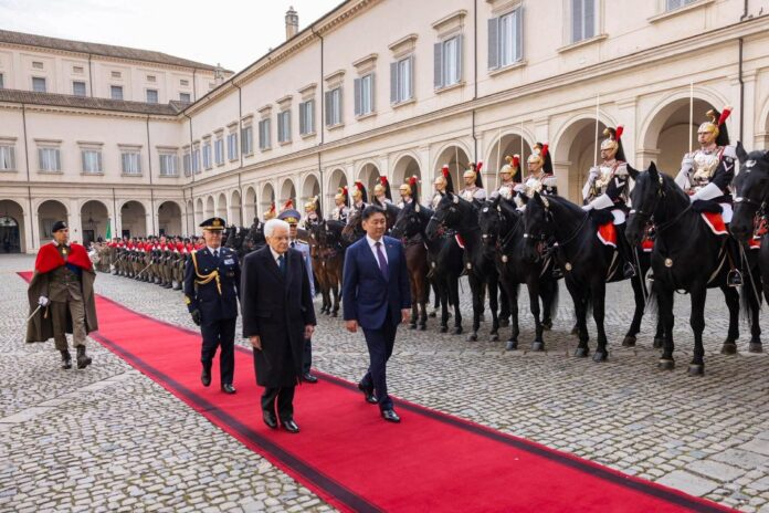 Монгол Улсын Ерөнхийлөгч У.Хүрэлсүх, гэргий Л.Болорцэцэг нарыг Бүгд Найрамдах Итали Улсын Ерөнхийлөгч Сэржо Маттарэлла, тэргүүн хатагтай Лаура Маттарэлла нар албан ёсоор угтаж авлаа